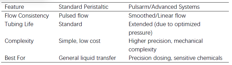 Pulsation Dampening: Through precision-engineered arm geometry, these systems attempt to smooth out the flow, making them suitable for applications where a steady, non-fluctuating delivery is critical, such as chemical dosing or laboratory analysis.